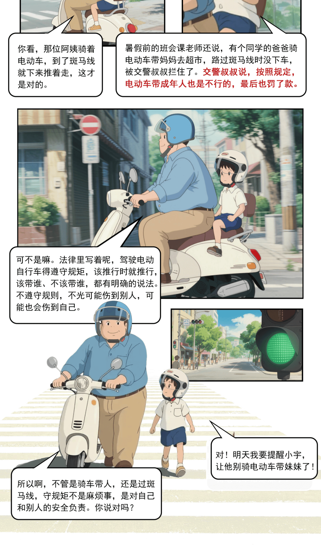 神兽们上下学过马路请走斑马线,骑电动车请戴好头盔,别学蛇皮走位,毕竟我们没有“铠甲”护体!因为遵守交通规则就会自动获得“复活甲”,平安到校才是真!