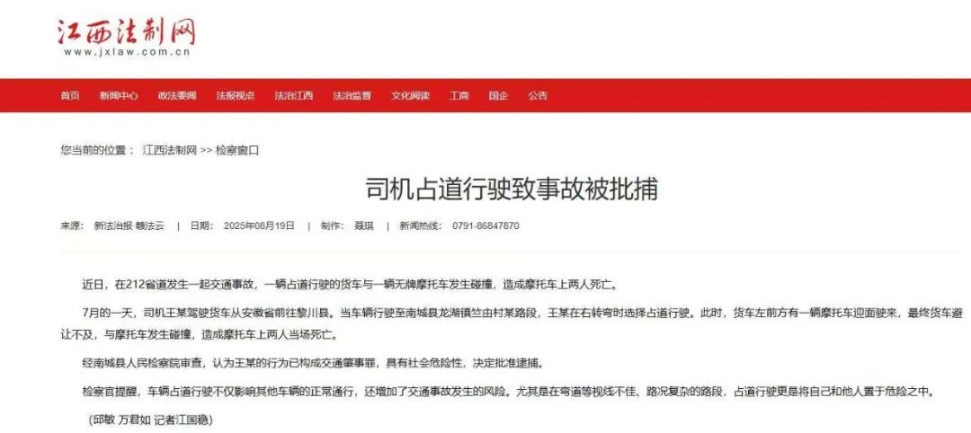 近日,在212省道发生一起交通事故,一辆占道行驶的货车与一辆无牌摩托车发生碰撞,造成摩托车上两人死亡。
