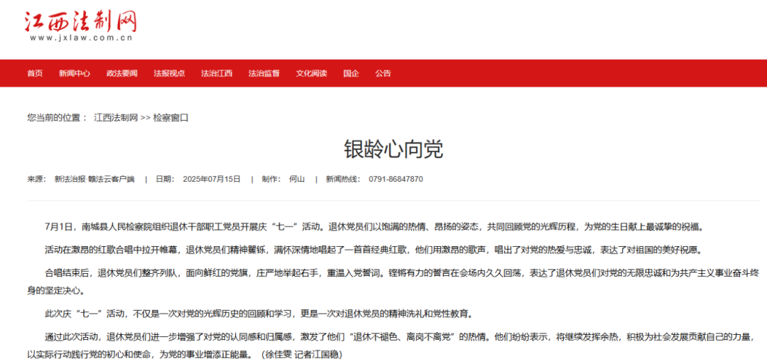 7月1日,南城县人民检察院组织退休干部职工党员开展庆“七一”活动。退休党员们以饱满的热情、昂扬的姿态,共同回顾党的光辉历程,为党的生日献上最诚挚的祝福。